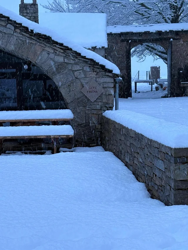 Winter emphasises the timeless character of the site and its buildings, particularly the sheepfold, whose traditional architecture blends perfectly into the landscape. The terraces, courtyards and green spaces take on a special dimension under the snow, inviting contemplation and serenity. This season allows you to fully appreciate the peace and tranquillity that are an integral part of the experience offered by Clos Bel Air.